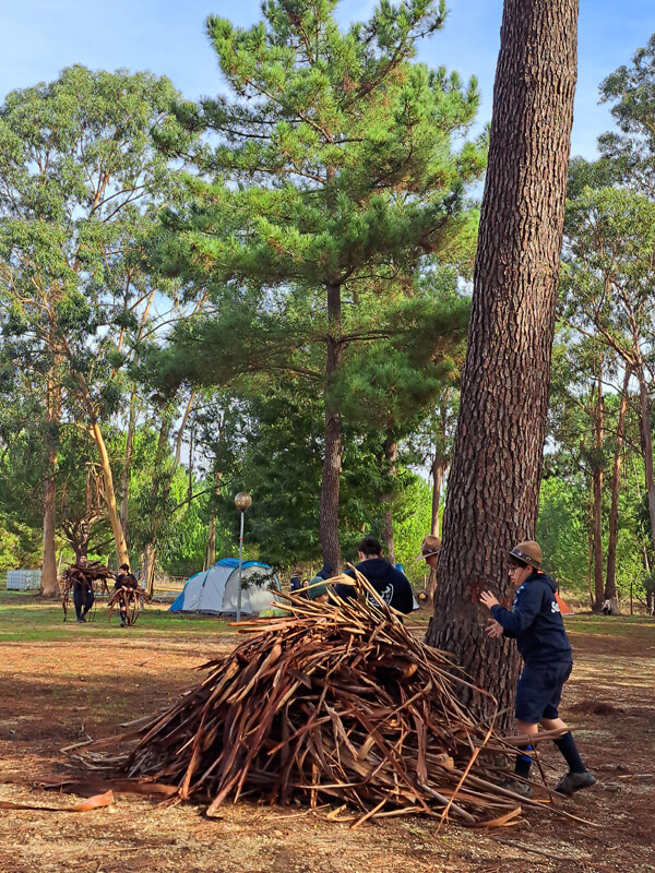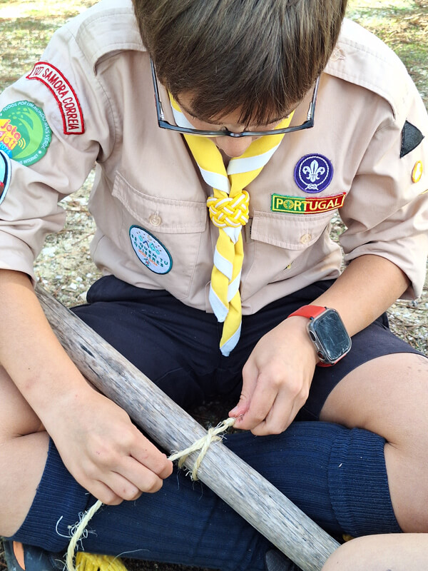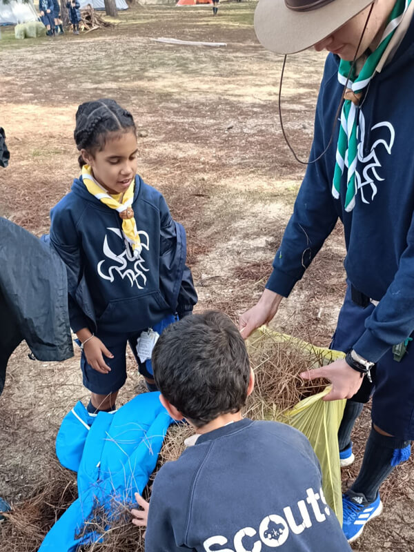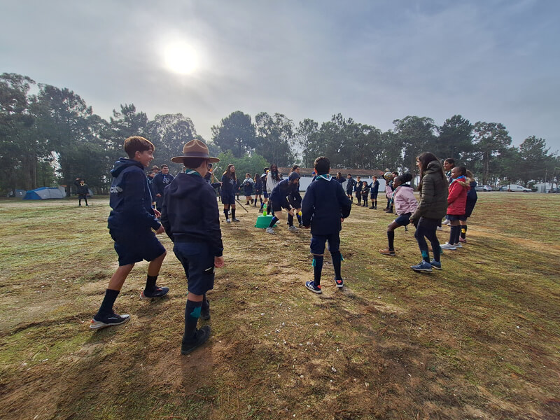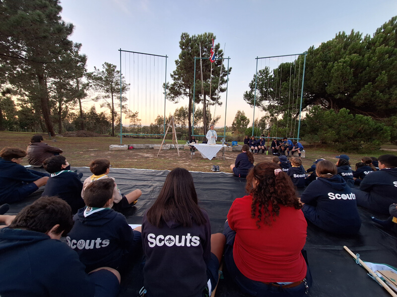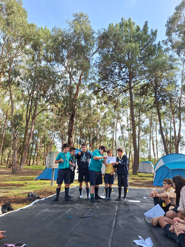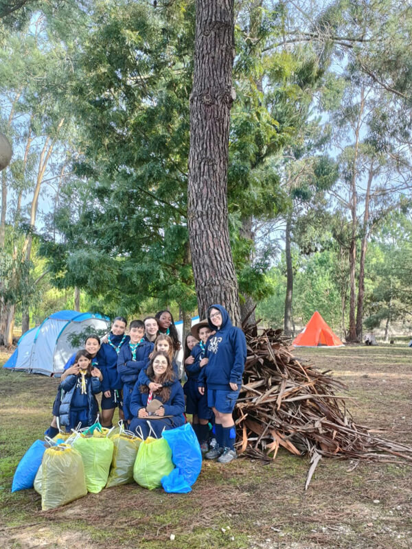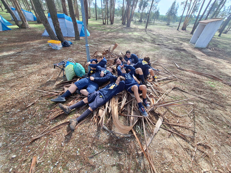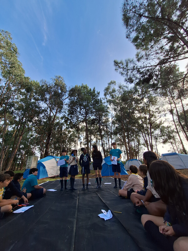 No domingo, houve tempo para jogos em agrupamento, reforçando laços e espírito de equipa mas dedicámos também um momento à limpeza do campo, que bem precisava após a tempestade da semana anterior, mostrando que cuidar do espaço é parte do nosso compromisso.