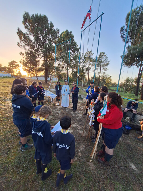 O sábado começou com um hike de algumas secções até uma quinta agrícola, onde os participantes puderam aprender mais sobre a vida no campo e a importância da sustentabilidade. Seguiu-se a apresentação dos projetos da II Secção, mostrando criatividade e empenho dos nossos exploradores. No final da tarde, celebrámos em conjunto uma Eucaristia em campo, marcada pela investidura de novos guias, num momento de grande significado para todos.