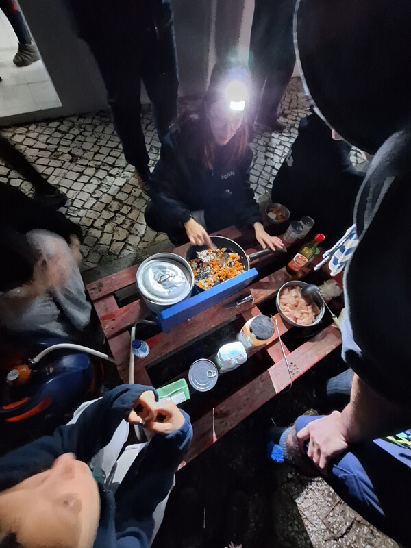 À noite, houve ainda um concurso de culinária, onde cada equipa mostrou talento e originalidade, tornando as refeições uma verdadeira festa. Depois do jantar, a animação continuou com um jogo noturno, que trouxe emoção e espírito de equipa sob as estrelas.