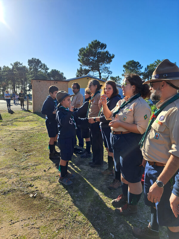 O acampamento terminou com a entrega de insígnias de noites de campo, progresso e especialidades, reconhecendo o esforço e dedicação dos nossos escuteiros.